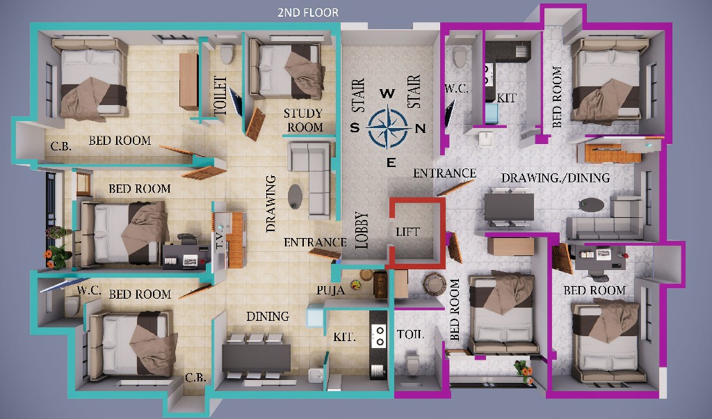 ELECTRICAL WORKS: Concealed wiring in all flat, each flat will be provided with the following electrical point.