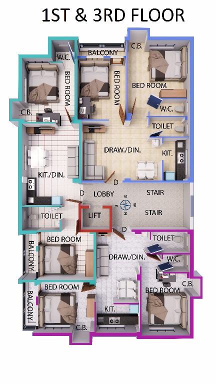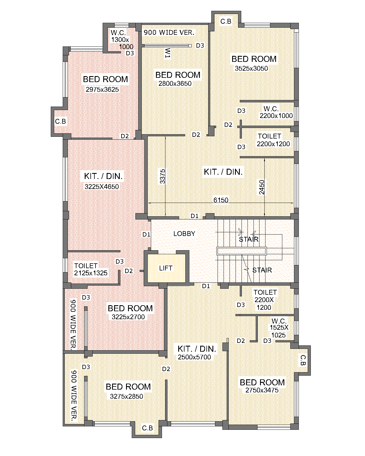 FLOORING: Total flooring will be of Vitrified Tiles. Stair & Lobby area flooring would be of marble.