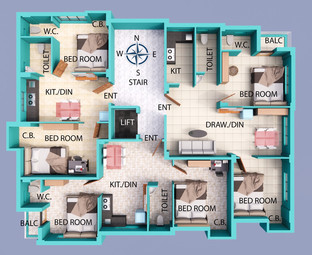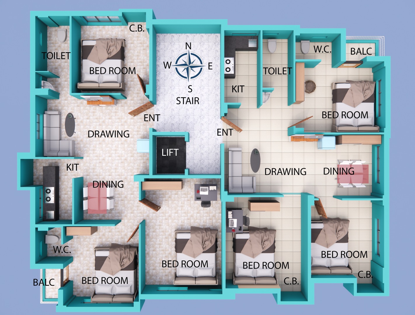 FLOORING: Total flooring will be of Vitrified Tiles. Stair & Lobby area flooring would be of marble.